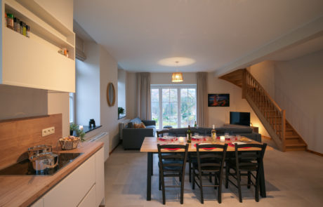 – Au rez-de-chaussée, se trouve la cuisine équipée, une toilette séparée, un coin salon, un jardin avec une terrasse privative.