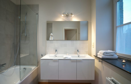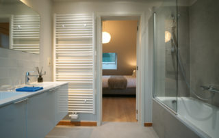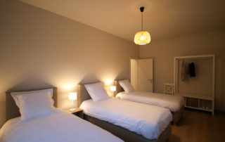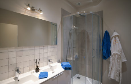 – Au premier étage, une chambre avec trois lits séparés et une seconde chambre équipée avec deux lits séparés, une salle de bain privative avec baignoire et toilette et une salle de douche avec toilette.